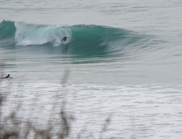 Dawn light from in the tube. Porth Neigwl. Fluky still from my GoPro.
